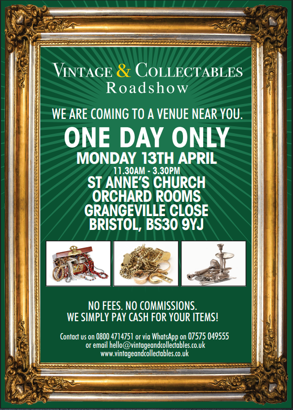 Vintage & Collectables Roadshow Monday, April 13, 2026 11:30 AM 3:30 PM 11:30 15:30 Google Calendar ICS